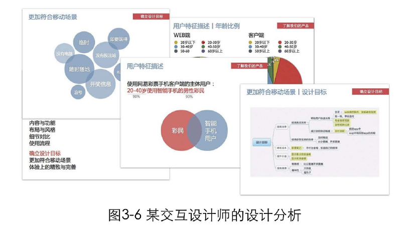 如果前三者你全都具備了,那么成為一個(gè)優(yōu)秀的設(shè)計(jì)師只是時(shí)間的問(wèn)題。快速學(xué)習(xí)一些基本的專業(yè)技能,再投身到一些項(xiàng)目中去,你就可以很容易地產(chǎn)出一些優(yōu)質(zhì)的作品,從而得到好的工作機(jī)會(huì)。某交互設(shè)計(jì)師的設(shè)計(jì)分析,如圖3-6所示。某交互設(shè)計(jì)師的原型截圖,如圖3-7所示。