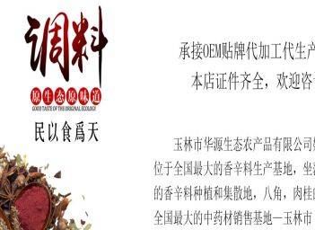 玉林市華源生態(tài)農(nóng)產(chǎn)品有限公司始建1999,位于全國最大的香辛料生產(chǎn)基地,坐落在中國最大的香辛料種植和集散地,八角,肉桂的原產(chǎn)地以及全國最大的中藥材銷售基地--------廣西玉林市。該公司是一家經(jīng)營調(diào)味香料和中藥材等產(chǎn)品的經(jīng)銷批發(fā)兼零售的有限公司。公司與多家零售商和代理商建立長期穩(wěn)定的合作關(guān)系,并且在國內(nèi)外有很大的銷售市場。 公司經(jīng)營的產(chǎn)品天然香辛料系列有:八角、肉桂、白胡椒、黑胡椒、良姜、香葉、桂通、煙桂、辣椒、孜然、淮山片、木薯片、甘草、豆蔻、紅寇、白寇、姜黃、姜塊、姜個(gè)、肉果、靈草、丁香、草果、香茅草、香砂,山奈、桂花 經(jīng)營的天然中藥材系列有:當(dāng)歸、雞血藤、莪術(shù)、紅棗、 公司實(shí)力雄厚,重信用、守合同、保證產(chǎn)品質(zhì)量,以多品種經(jīng)營特色和薄利多銷的原則,贏得了廣大客戶的信任。
