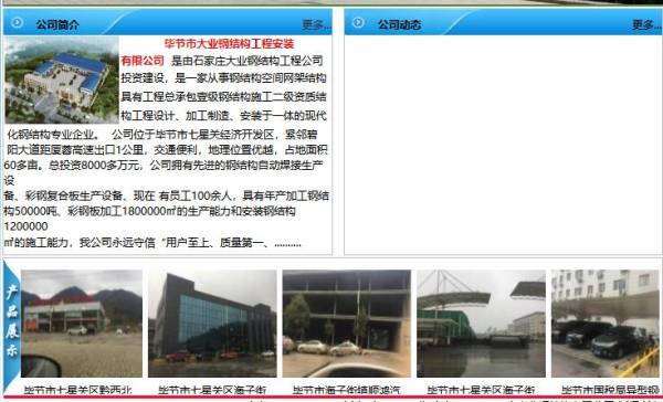 畢節(jié)市大業(yè)鋼結構安裝工程有限公司選用我司企業(yè)金屬材料行業(yè)的網(wǎng)站優(yōu)化產(chǎn)品,其SEO關鍵詞有 畢節(jié)市大業(yè)鋼結構安裝工程有限公司。其特點是用很合適的展示方式、展示效果、站點框架,把客戶及其用戶很關心的問題突出表現(xiàn);并以簡潔明朗的設計風格,清晰展現(xiàn)公司水平實力,確保一秒抓住目標用戶眼球,給用戶留下良好的第一印象。畢節(jié)市大業(yè)鋼結構安裝工程有限公司成立于2012年,是經(jīng)畢節(jié)市市場監(jiān)督管理局審核的有資質的公司,其統(tǒng)一社會信用代碼:91520502598375252R 。公司地址:畢節(jié)市七星關經(jīng)濟開發(fā)區(qū)。
