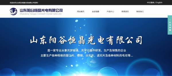 山東陽谷恒晶光電有限公司選用我司企業(yè)電子元器件行業(yè)的網(wǎng)站優(yōu)化產(chǎn)品,其SEO關(guān)鍵詞有 光學(xué)玻璃窗片,棱鏡,透鏡,濾光片,晶體,毛坯,山東陽谷恒晶光電有限公司。其特點(diǎn)是用很合適的展示方式、展示效果、站點(diǎn)框架,把客戶及其用戶很關(guān)心的問題突出表現(xiàn);并以簡潔明朗的設(shè)計(jì)風(fēng)格,清晰展現(xiàn)公司水平實(shí)力,確保一秒抓住目標(biāo)用戶眼球,給用戶留下良好的第一印象。山東陽谷恒晶光電有限公司成立于2006年,是經(jīng)陽谷市市場監(jiān)督管理局審核的有資質(zhì)的公司,其統(tǒng)一社會信用代碼:91371521663521878C 。公司地址:山東陽谷祥光經(jīng)濟(jì)開發(fā)區(qū)。