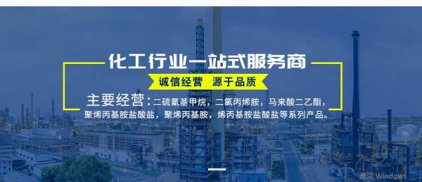 公司主要經(jīng)營化工產(chǎn)品包括二硫氰基甲烷,二氯丙烯胺,馬來酸二乙酯,聚烯丙基胺鹽酸鹽,聚烯丙基胺,烯丙基胺鹽酸鹽等系列產(chǎn)品。 公司秉承“質量、客戶至上、誠實守信、互惠互利”的經(jīng)營理念,產(chǎn)品質量及售后服務受到國內(nèi)外客戶的一致好評。